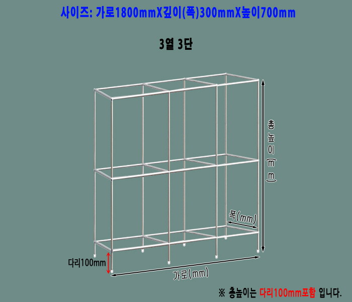 [ 콤비락 진열대 - 3열 3단 ]가로(W)1800mm폭(깊이)300mm높이(H)700mm[배송비무료]