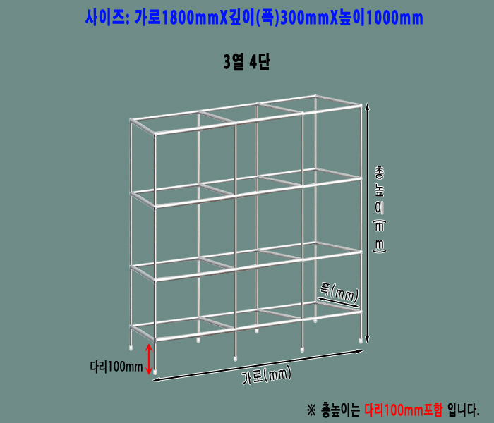 [ 콤비락 진열대 - 3열 4단 ]가로(W)1800mm폭(깊이)300mm높이(H)1000mm[배송비무료] 이미지 확대 보기